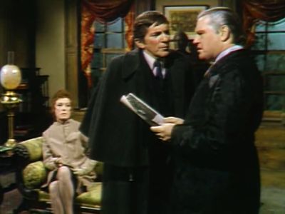 Julia returns to Collinwood in the morning where she runs into Barnabas and learns about Vicki's distress signal from the past and approaches the subject rather skeptically: The handwriting isn't Vicki's; there's no signature and hello, time travelling notes from the past? Not so common. Julia calls it "flimsy evidence" and insists that Barnabas take the trip to Boston with the kids.